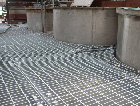污水廠用鋼格板 污水處理廠用鋼格柵其特點為: 1、強度高:牢固的網(wǎng)格壓焊結(jié)構(gòu)使其具有高承載; 2、結(jié)構(gòu)輕:便于吊裝等特點; 3、外形美觀,經(jīng)久耐用:熱浸鋅表面處理使其具有相當好的防腐能力,表面光澤美觀; ···