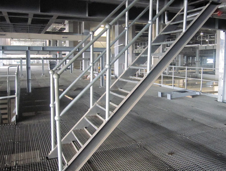 檢修平臺鋼格柵板是用扁鋼按照一定的間距和橫桿進行交叉排列,并且焊接成中間帶有方形格子的一種鋼鐵制品,檢修平臺鋼格柵板主要用來做鋼結(jié)構(gòu)平臺板,鋼梯的踏步板等.檢修平臺鋼格柵板一般采用碳鋼制作,外表熱鍍鋅,可以起到防止氧化的作用。檢修平臺鋼格柵板也可以采用不銹鋼制作。檢修平臺鋼格柵板具有通風,采光,散熱,防滑,防爆等性能。檢修平臺鋼格柵板應(yīng)用范圍極其廣泛···